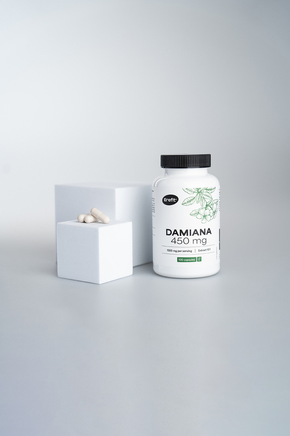 Ingrediente: extract de tulpină și frunze de damiana 10:1 (Turnera diffusa), inulină, celuloză hidroxipropilmetilică (HPMC; învelișul vegetal al capsulei), L-leucină.
