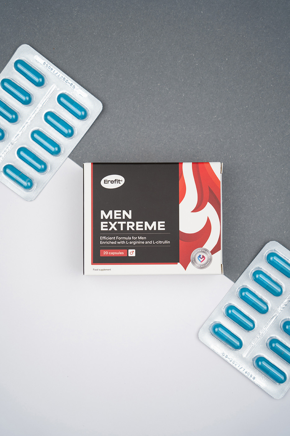 Ingrediente: maltodextrină, gelatină (capsulă), extract din semințe de struguri (Vitis vinifera), L-arginina, extract de floare de șofran (Crocus sativus), L-citrulină, antiaglomeranți: săruri de magneziu ale acizilor grasi și dioxid de siliciu, nicotinamidă (vitamina B3), acid pteroilmonoglutamic (vitamina B9/acid folic), colorant: carbonat de calciu.
